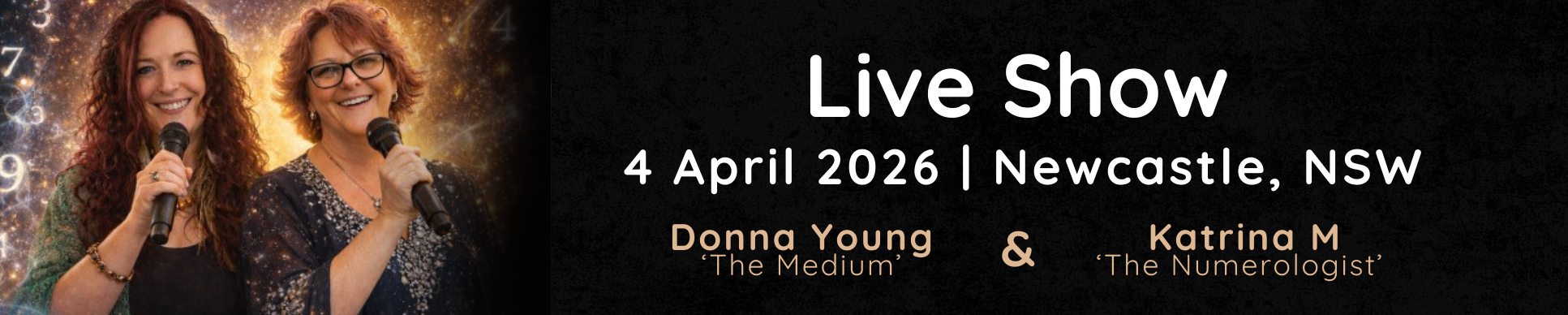 Katrina M one of Australia’s Most well-known Numerologist’s will reveal the powerful patterns and hidden messages within numbers, helping you understand the deeper meaning behind your life path, relationships and timing in life. Donna Young, internationally known as “The Medium,” will connect with the spirit world, delivering heartfelt messages and validations from loved ones in spirit with compassion, humour and authenticity.